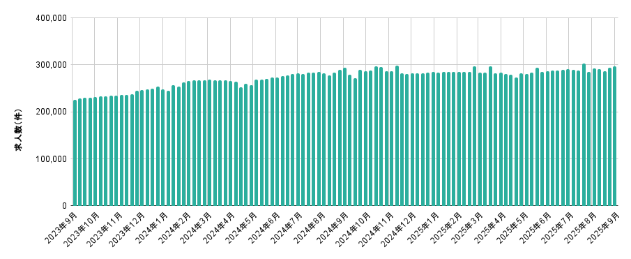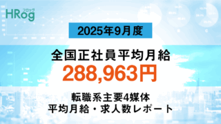 全国正社員平均月給は「288,963円」【2025年9月度 正社員平均月給・求人数レポート】