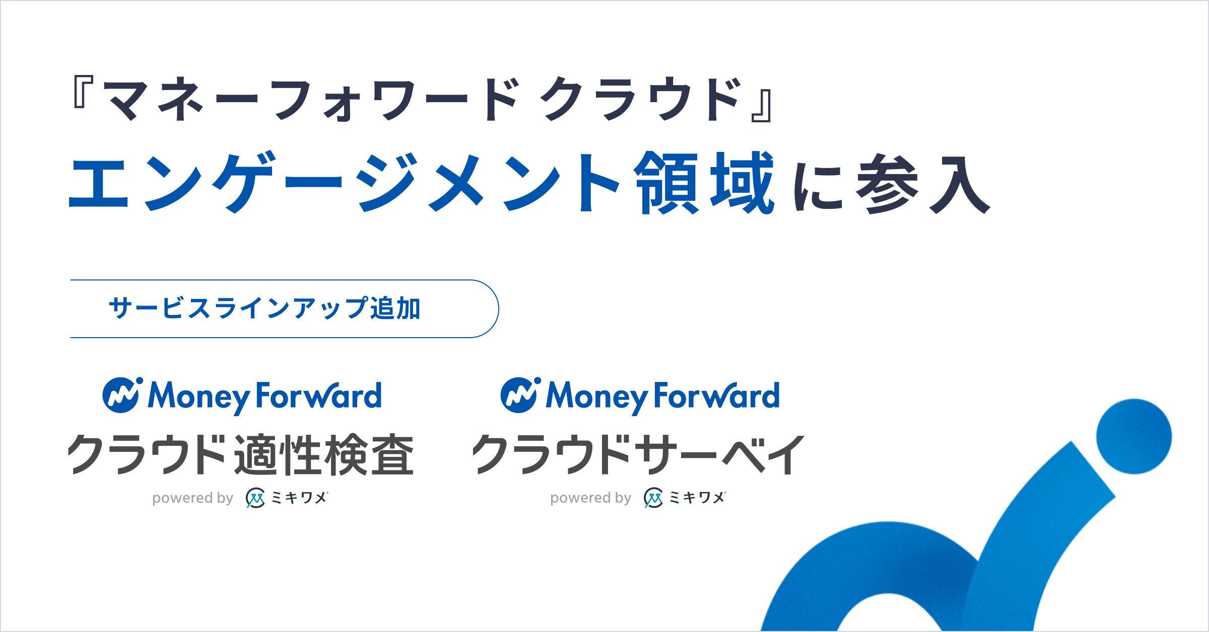 株式会社マネーフォワードは、人事労務領域に加え従業員エンゲージメント領域に新たに参入し、「マネーフォワード クラウド適性検査 powered by ミキワメ」(以下、「マネーフォワード クラウド適性検査」)および「マネーフォワード クラウドサーベイ powered by ミキワメ」(以下、「マネーフォワード クラウドサーベイ」)の提供を開始した。