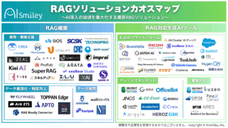 株式会社アイスマイリーは、幅広い業界において活用可能な最新のRAGソリューションサービスをまとめた「RAGソリューションカオスマップ」を、2025年10月8日に公開した。掲載総数は84製品である。