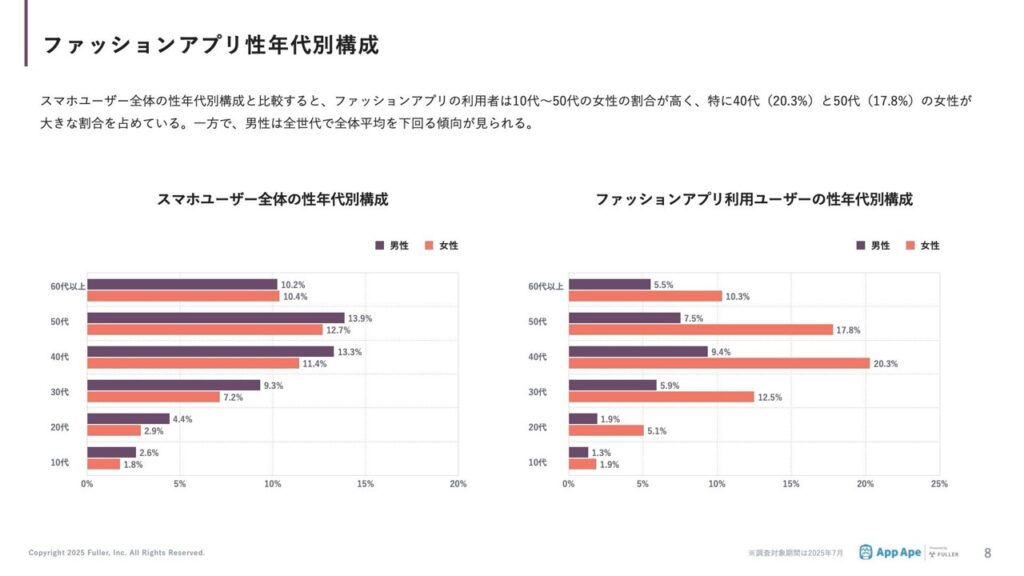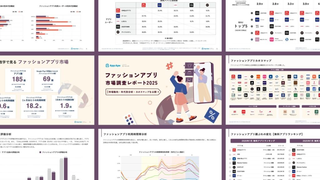 フラー株式会社は、アプリ市場分析サービス「App Ape(アップ・エイプ)」で蓄積するデータをもとに、ファッションアプリの動向や利用実態を多角的に分析した「ファッションアプリ市場調査レポート2025」を公開した。