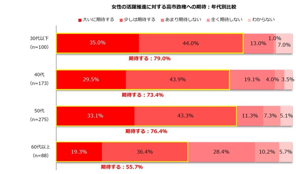 2.女性の活躍推進に対する高市政権への期待:年代別比較