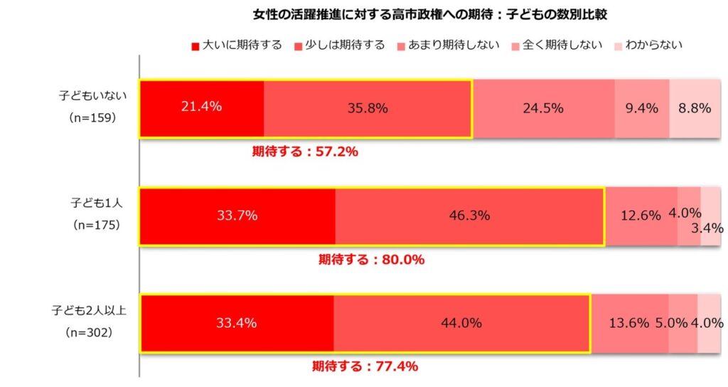 4.女性の活躍推進に対する高市政権への期待:子どもの数別比較