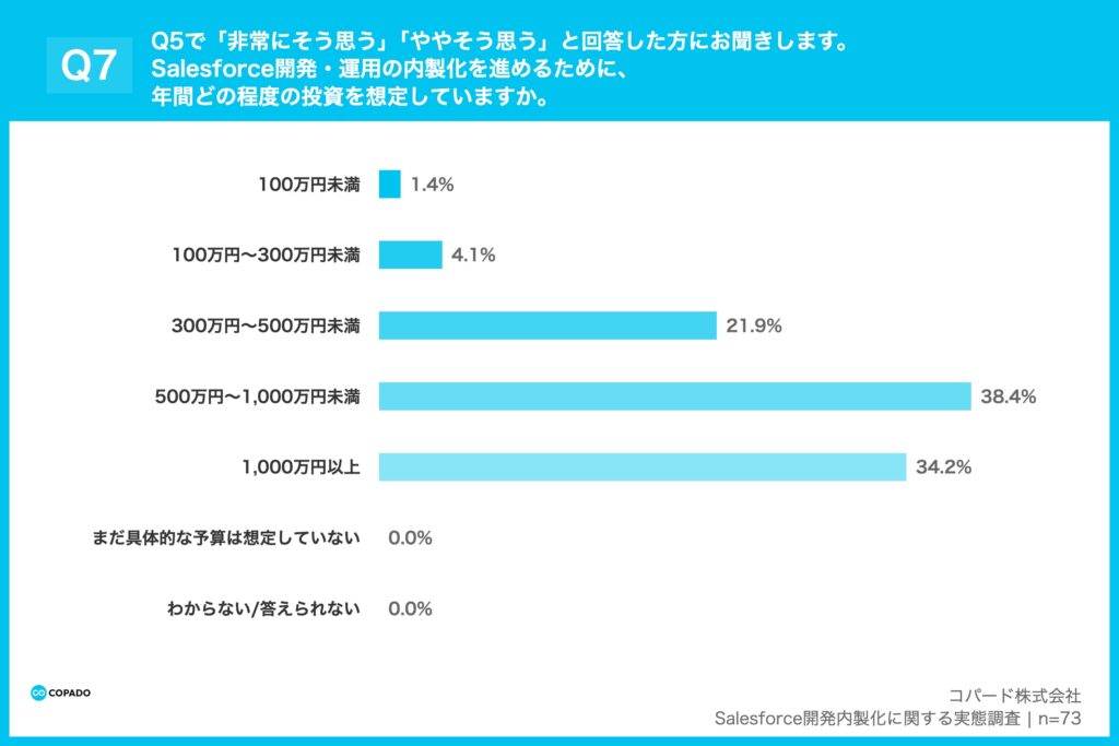 Salesforce開発・運用 内製化への想定投資額、「年間500万円以上」が7割超を占める