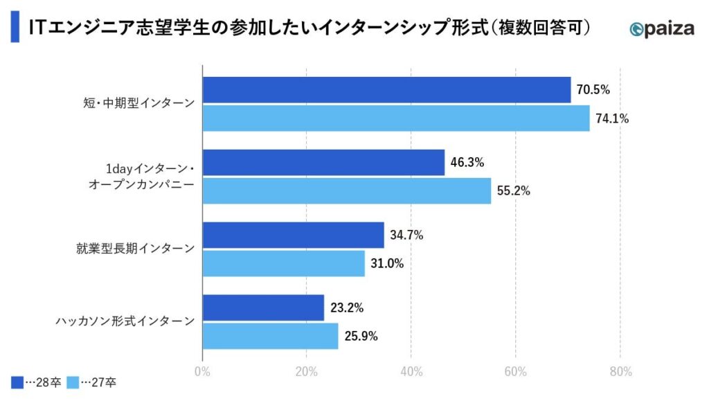 【28卒・27卒比較】ITエンジニア志望学生のインターンシップに対する希望形式