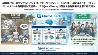 AI業務代行(BPO)やAIコンサルティング事業を展開する株式会社AIセキュリティソリューションズは、同社が提供するAIによるセキュリティチェックシート自動回答・支援サービス「QuickCheck(クイックチェック)」が、国内有数の財閥系グループに属する老舗大手IT企業に正式導入され、運用および初回納品が完了したことを発表した。